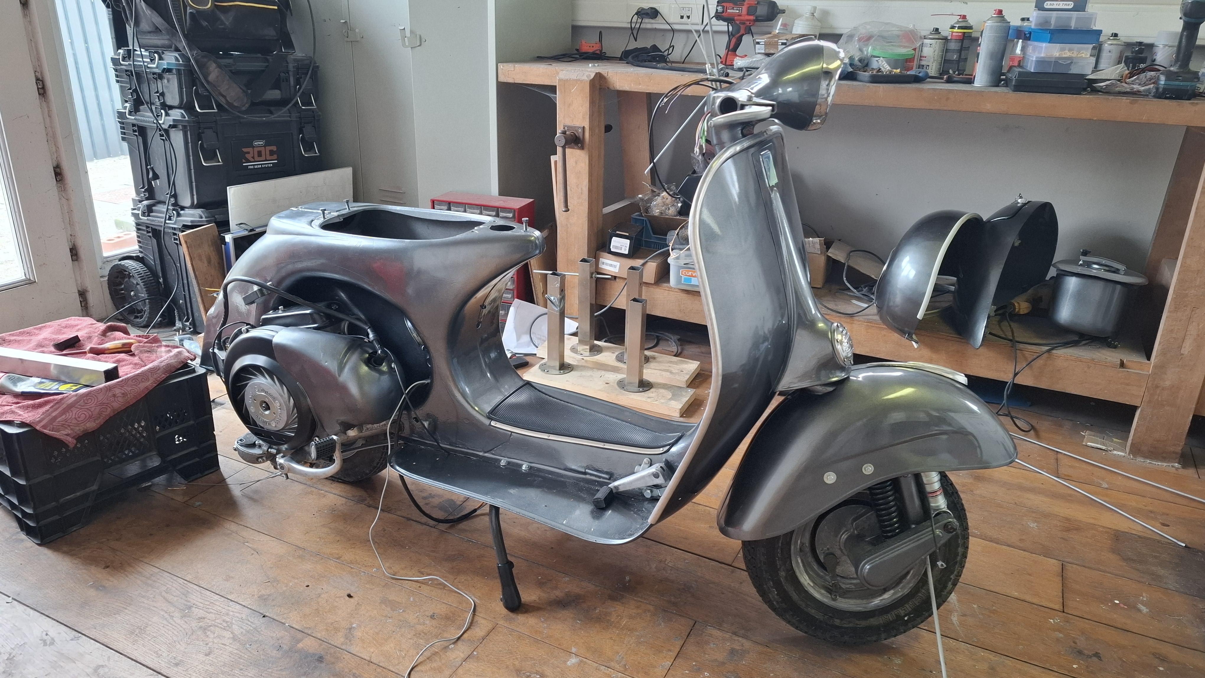 Van de week heb ik een Vespa ACMA 125N gekocht, grotendeels origineel, het dealerplaatje uit Troyes zit er nog op. Het plan is nu deze zo veel mogelijk origineel op te bouwen. Plaatwerk ga ik weinig en lak ga ik niks aan doen behalve conserveren, techniek ga ik wel helemaal doorlopen. Ik hoop dat er hier ACMA kenners zijn die kunnen helpen met vragen over onderdelen/afmontage die anders zijn dan bij Italiaanse productie.