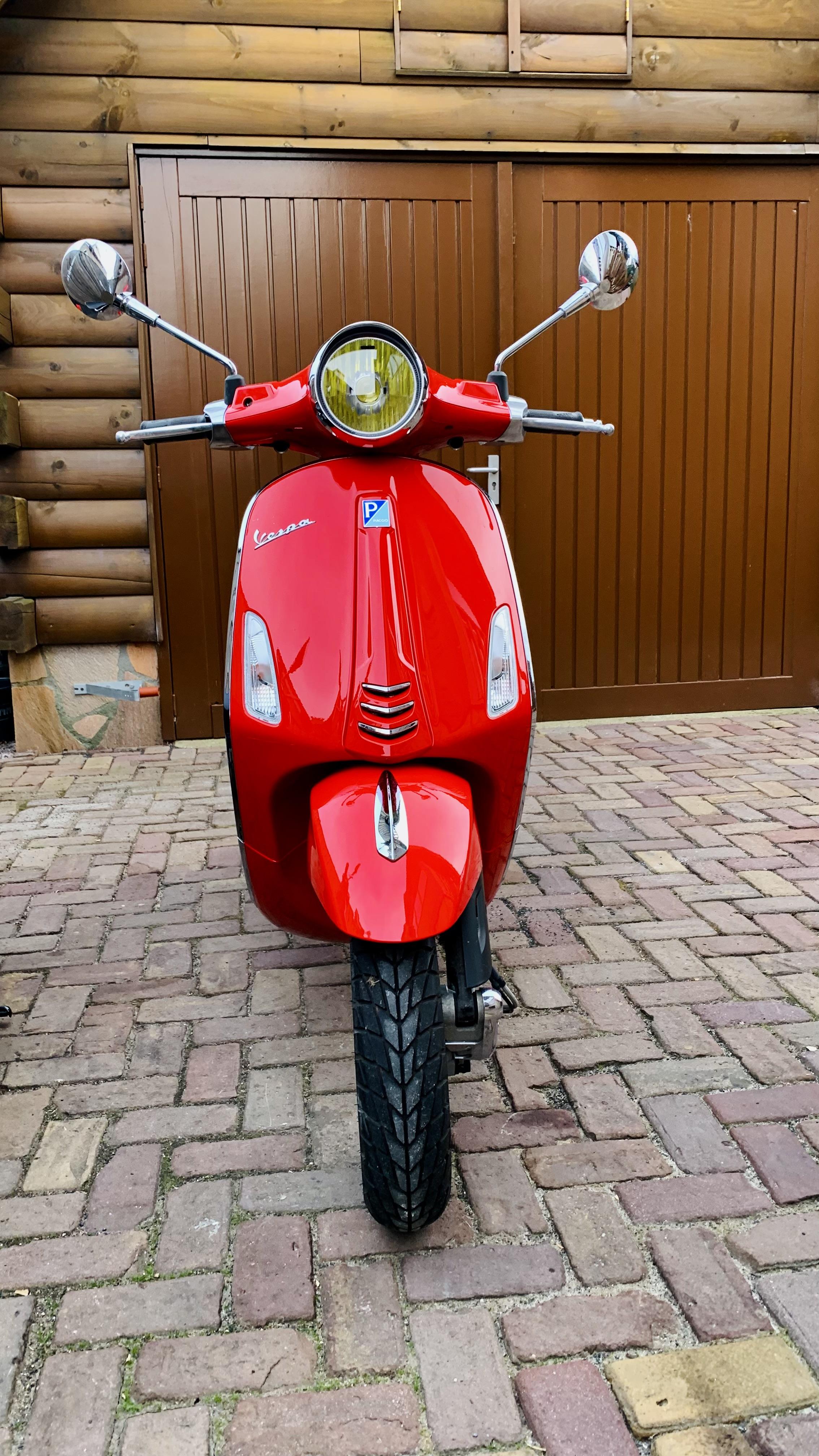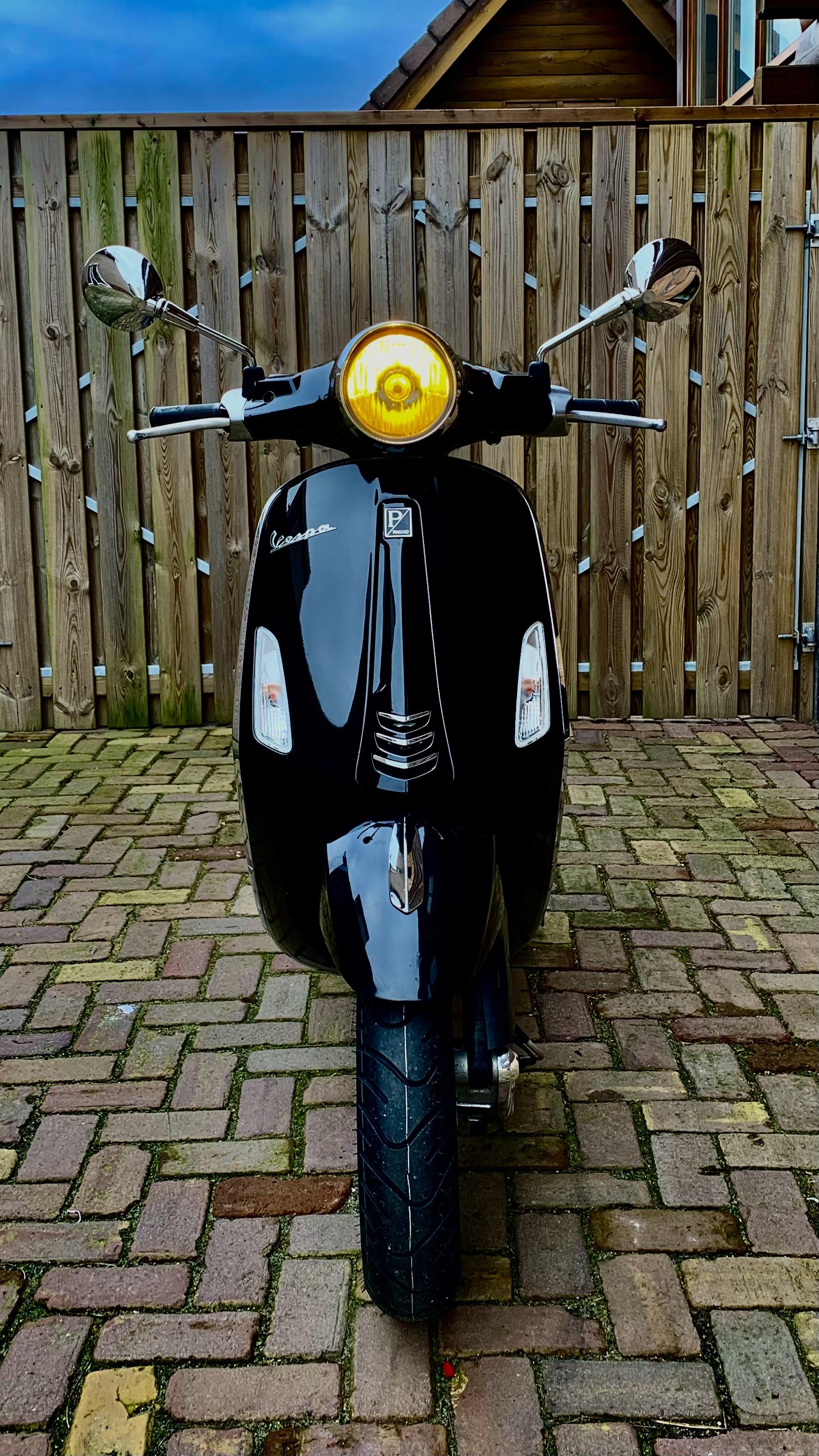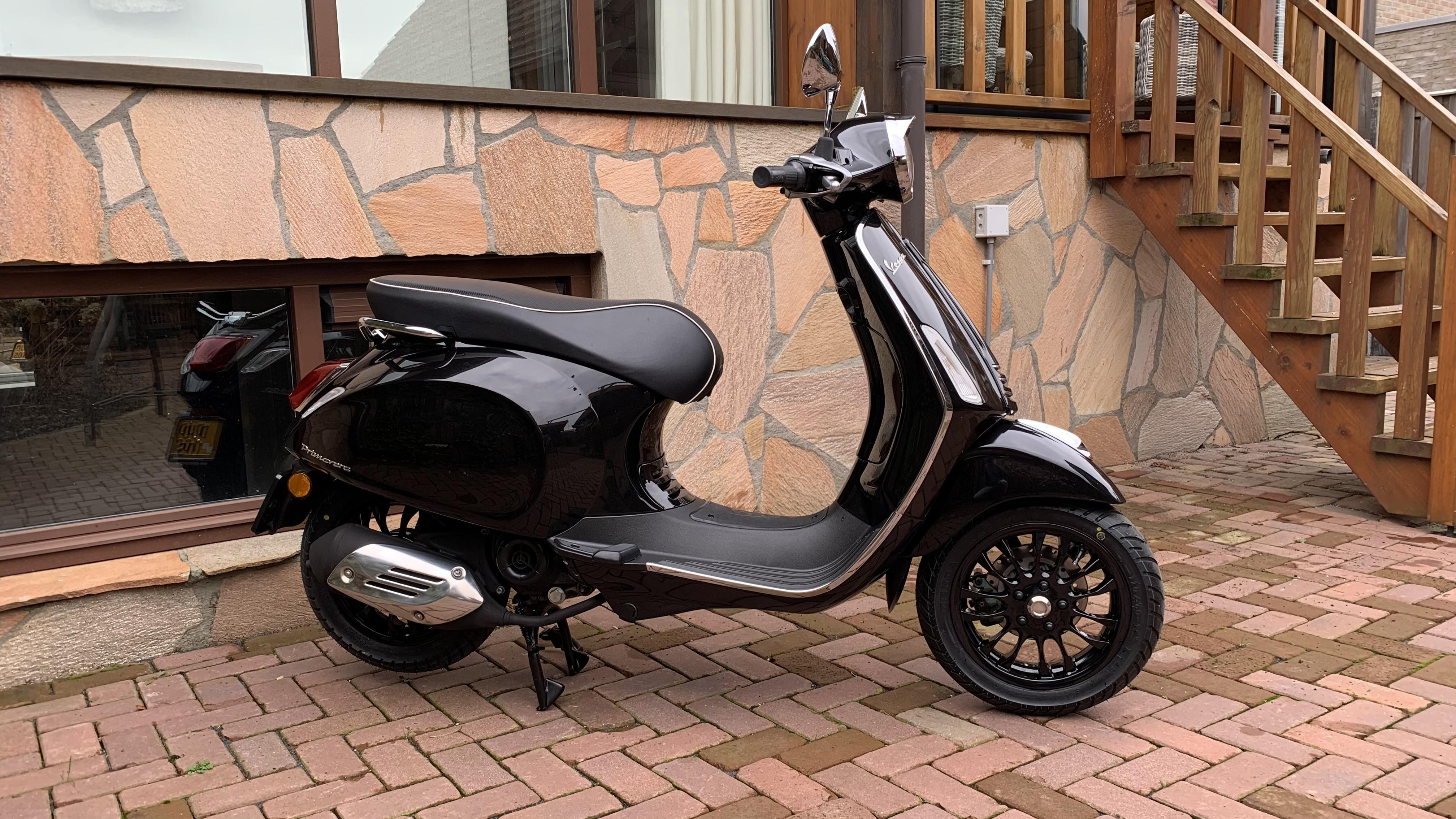 Vespa Reng Deng Deng Deng Posted February 13, 2024 Posted February 13, 2024 Eind November 2023 heb ik een Primavera gekocht uit 2017. In de afgelopen tijd ben ik wat bezig geweest met het uitvoeren van het reguliere onderhoud. Olie, oliefilter, luchtfilter, vertandingsolie, aandrijfriem en bougie heb ik vervangen, de remblokken en remschoenen heb ik gecontroleerd en goed bevonden. De kleppen zijn volgens de bijgeleverde bon rond de 14.500 km gesteld, dus dit moet goed zijn. Verder heeft de Primavera de afgelopen maanden enkele technische en cosmetische veranderingen ondergaan. Wat is er technisch veranderd? De variateur is vervangen voor een exemplaar van Malossi (Malossi Multivar) met 6.1 gr. rollen, de koppeling is ook vervangen voor een exemplaar van Malossi (Malossi Delta Clutch System) met witte trek en drukveer. De hoofdsproeier in de carburateur heb ik aangepast van maat 72 naar 78, de standaard maat (72) is aan de arme kant, zeker als de vario ring verwijderd wordt. Wat er technisch nog moet gebeuren is een andere cdi met begrenzer, deze is al besteld maar dit pakket is tussen wal en schip beland helaas, er wordt nu gezocht naar een oplossing. Het doel is niet zozeer een hele hoge topsnelheid (dat is met een viertakt toch al quasi onmogelijk in vergelijking met een tweetakt) 55/60 op de teller is meer dan zat om goed met de auto’s mee te kunnen komen binnen de bebouwde kom. Vooral het wat vlottere optrekken is hierin het doel en dat is al wel bereikt. _______________________________________ Cosmetisch gezien is ook het eea. veranderd; Allereerst is de nodige opsmuk verwijderd van de Primavera, ik hou toch meer van een cleanere look. Het hoge windscherm en de klapdrager zijn verwijderd en voor de klapdrager is een beugel van de Sprint in de plaats gekomen. Het originele achterlicht is vervangen voor één van de latere series Primavera/Sprint, dit is een plug & play aanpassing. De 11 inch zilverkleurige Primavera velgen met 5 spaken zijn vervangen voor zwarte 12 inch Sprint velgen, met de 12 inch wielen schijn je iets stabieler te rijden en in vind de Sprint velgen simpelweg gewoon mooier. Met het veranderen naar een inch grotere velgen moest ook de midden standaard vervangen worden zodat het achterwiel wel vrij staat als de scooter op de bok staat. Een spatbordverlenger is aangebracht aan het voorspatbord tegen het ergste opspattende vuil en kortere spiegels om de boel zo clean mogelijk te houden. De koplamp ring is vervangen voor een variant met een “petje” en in de koplamp heb ik een gele lamp geplaatst voor een meer retro look en zodat ik hopelijk wat meer opval in het verkeer. ________________________________________ Hieronder een aantal foto’s van de Primavera bij aankoop; En hieronder een aantal foto’s van de Vespa na de aanpassingen;