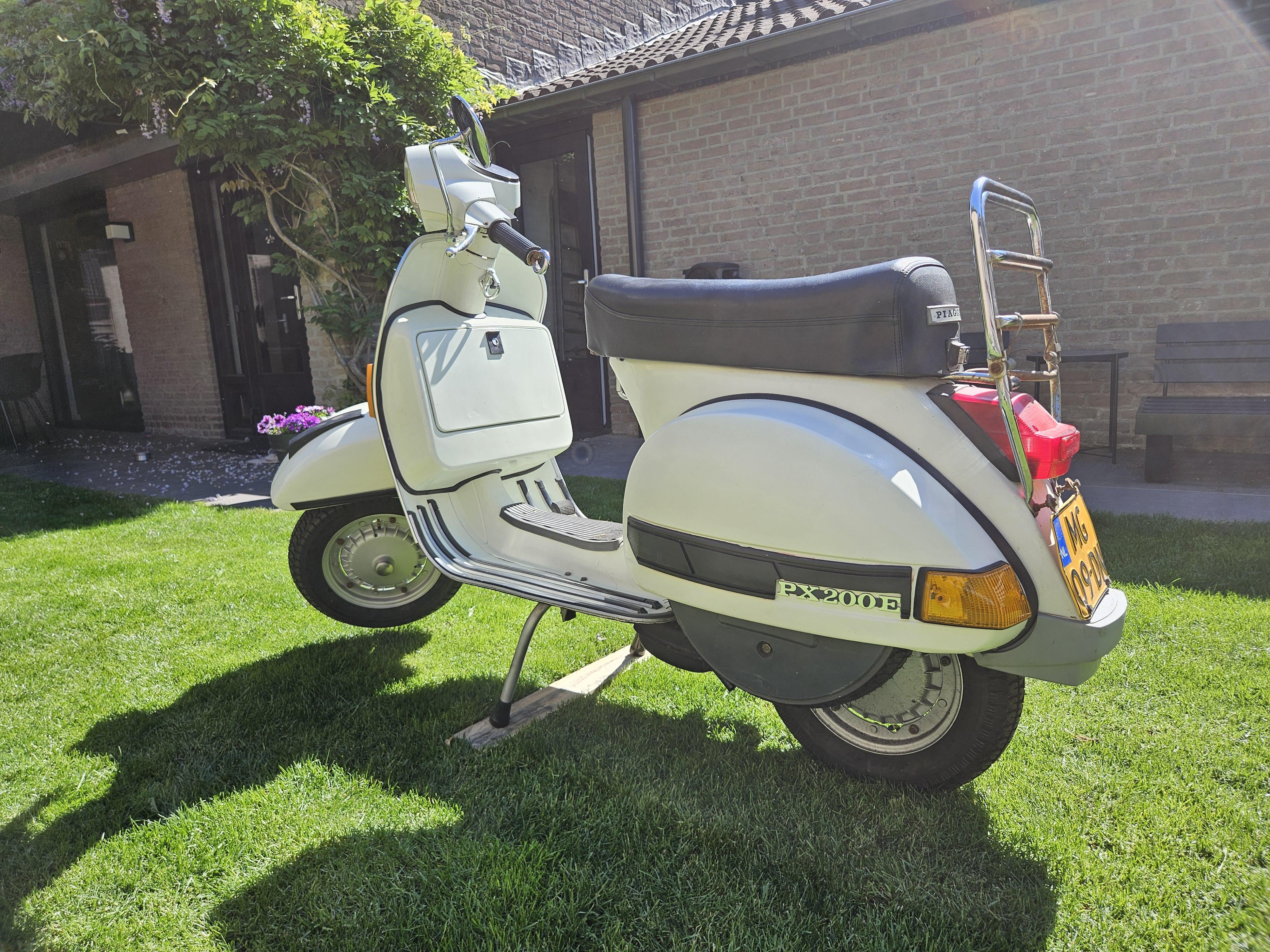 Skidmark Posted June 5, 2025 Author Posted June 5, 2025 Das niet handig, hier de advertentie. Hierbij verkoop ik mijn Vespa omdat ik ruimte moet maken in de garage. Ik heb de Vespa sinds eind 2022 van de 2e eigenaar overgenomen die hem had gekocht om te restaureren, maar er niet aan toe was gekomen. Sindsdien heb ik de Vespa opgeknapt en zo veel mogelijk in originele staat gelaten. Dit is dus geen getunede Vespa maar de standaard 200cc. Paar hoofdzaken: - De Vespa is compleet uit elkaar geweest, inclusief motorblok en waar nodig zijn zaken vernieuwd. - Nieuwe lagers, olie, pakkingen, koppeling, zuiger, cilinder, carburateur, uitlaat etcetera - De beruchte roestplekken zijn aangepakt door een lasser en het hele frame is behandeld met brunox. - Het hele frame is gezandstraald en opnieuw in 2k lak gezet. (Aflak laag vertoond sinaasappelhuid effect) Bij de Vespa komen wat extra onderdelen die er al op zaten en wat klein materiaal om in de toekomst de afstelling te veranderen mocht je dat willen. Ik merk dat ik vaak de motor pak in plaats van de Vespa en gezien er een motor moet komen voor mijn vriendin mag de Vespa naar een andere eigenaar om ruimte te maken. Bij interesse is de lijst van onderdelen beschikbaar en is een proefritje zeker mogelijk. Richtprijs 3000 euro. 3